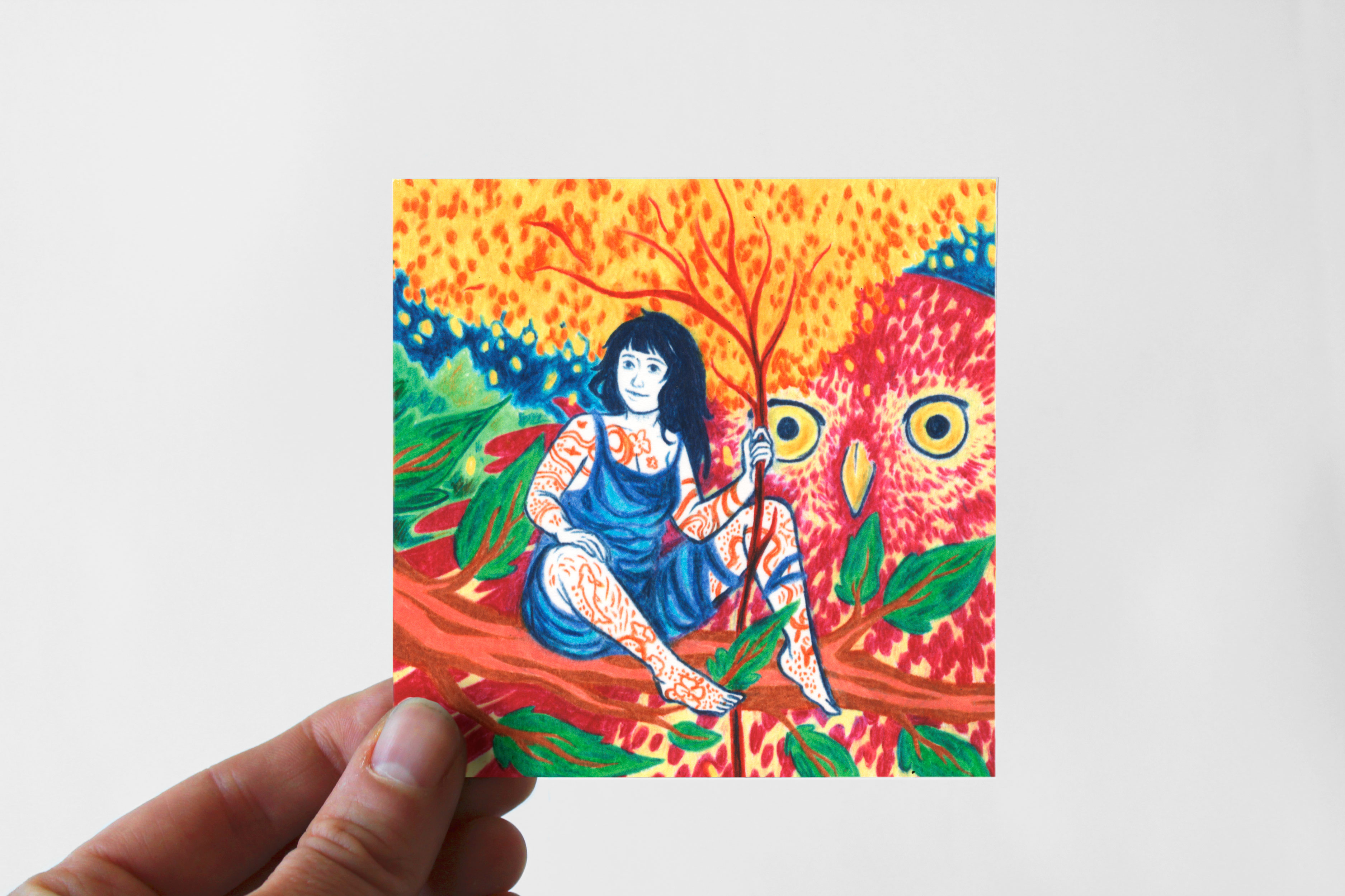 Reproduction d'un tout petit dessin aux crayons de couleur.