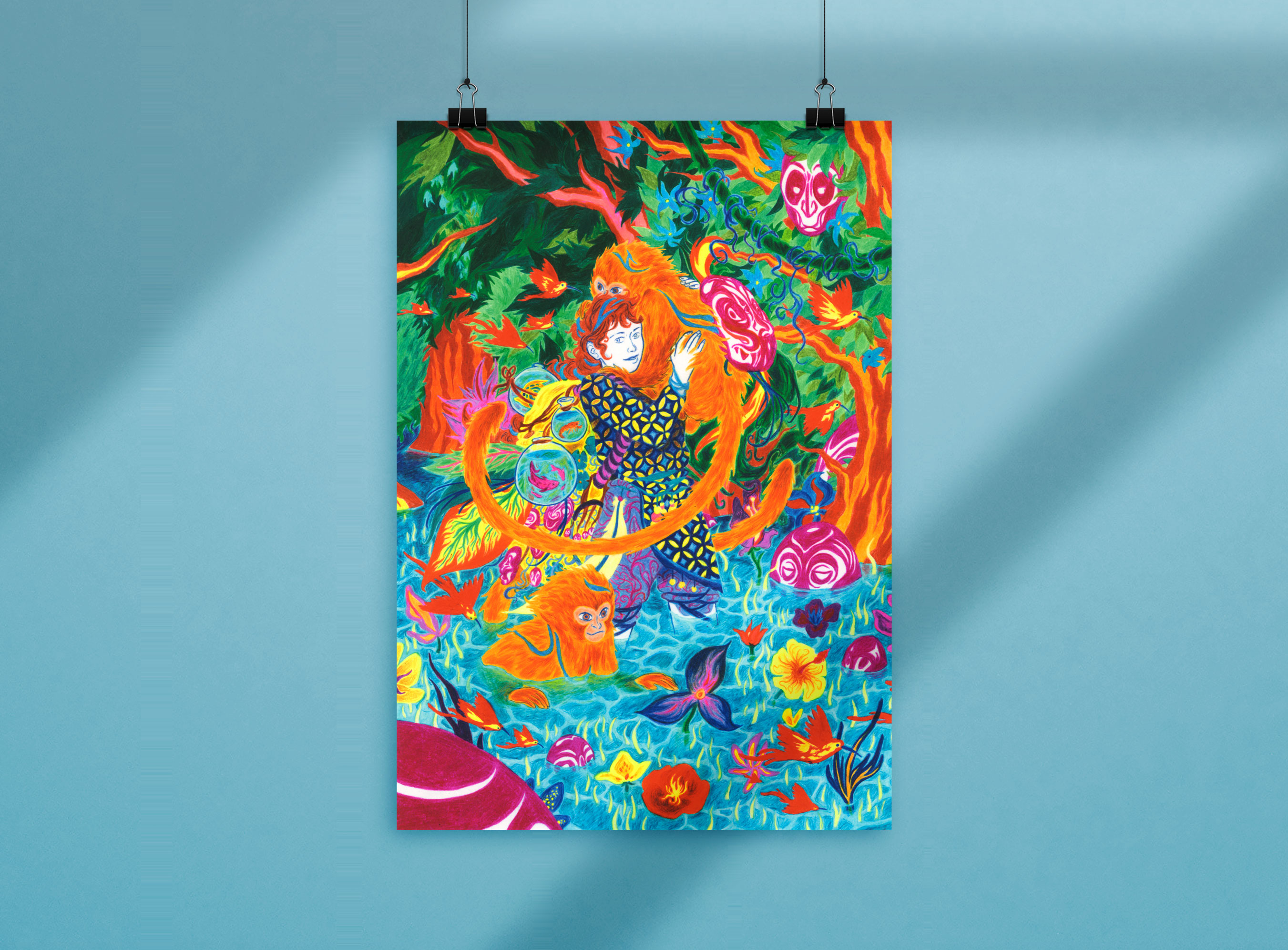 Il s'agit de la repoduction d'une scène de voyage dessinée originalement aux crayons de couleur.