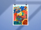 Il s'agit de la repoduction d'une scène floral dessinée originalement aux crayons de couleur.