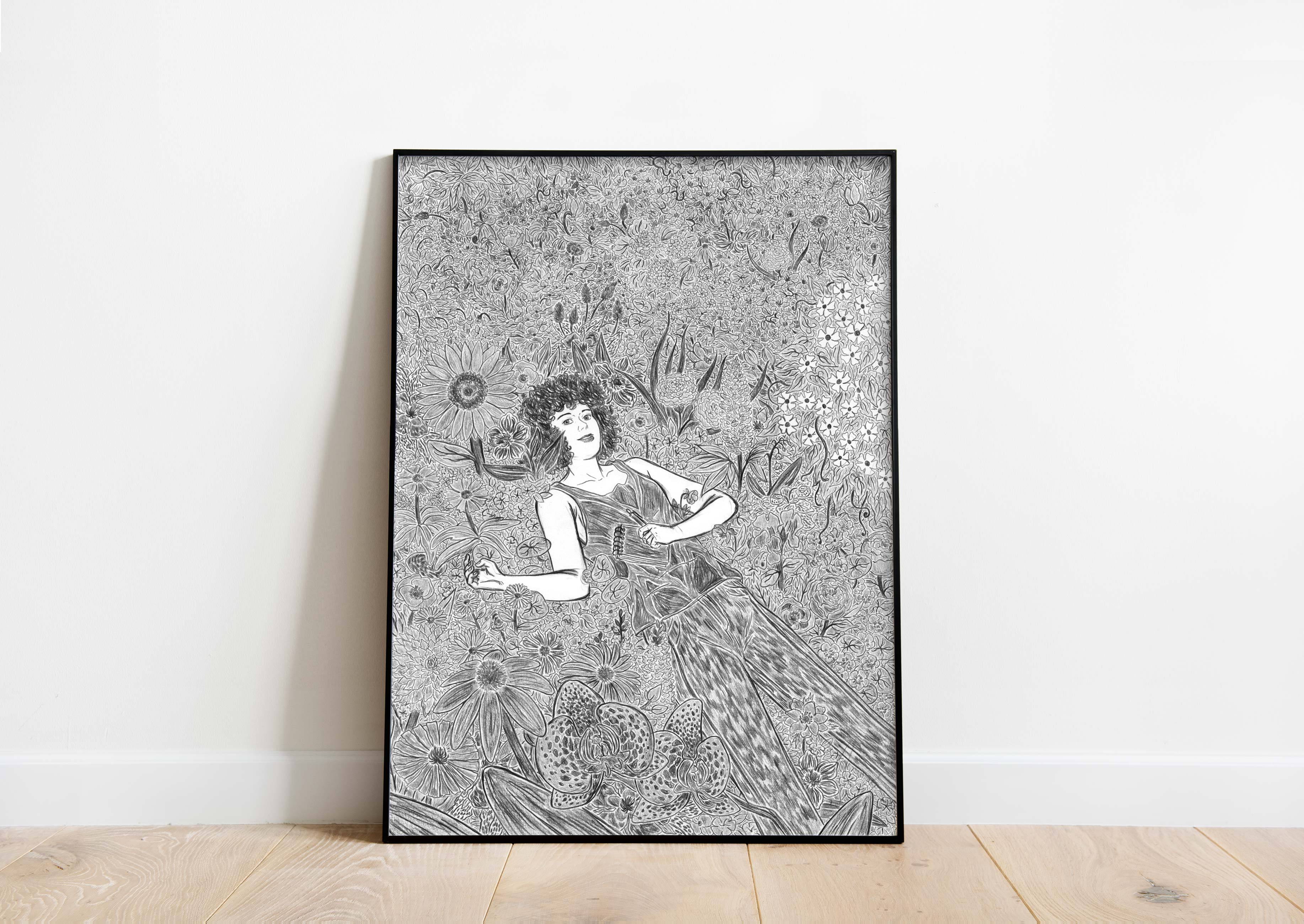 Ce dessin est la planche originale de la couverture de la bande dessinée "Comme une fleur" sortie en mars 2025 chez Delcourt, et scénarisée par Anne Baraou.