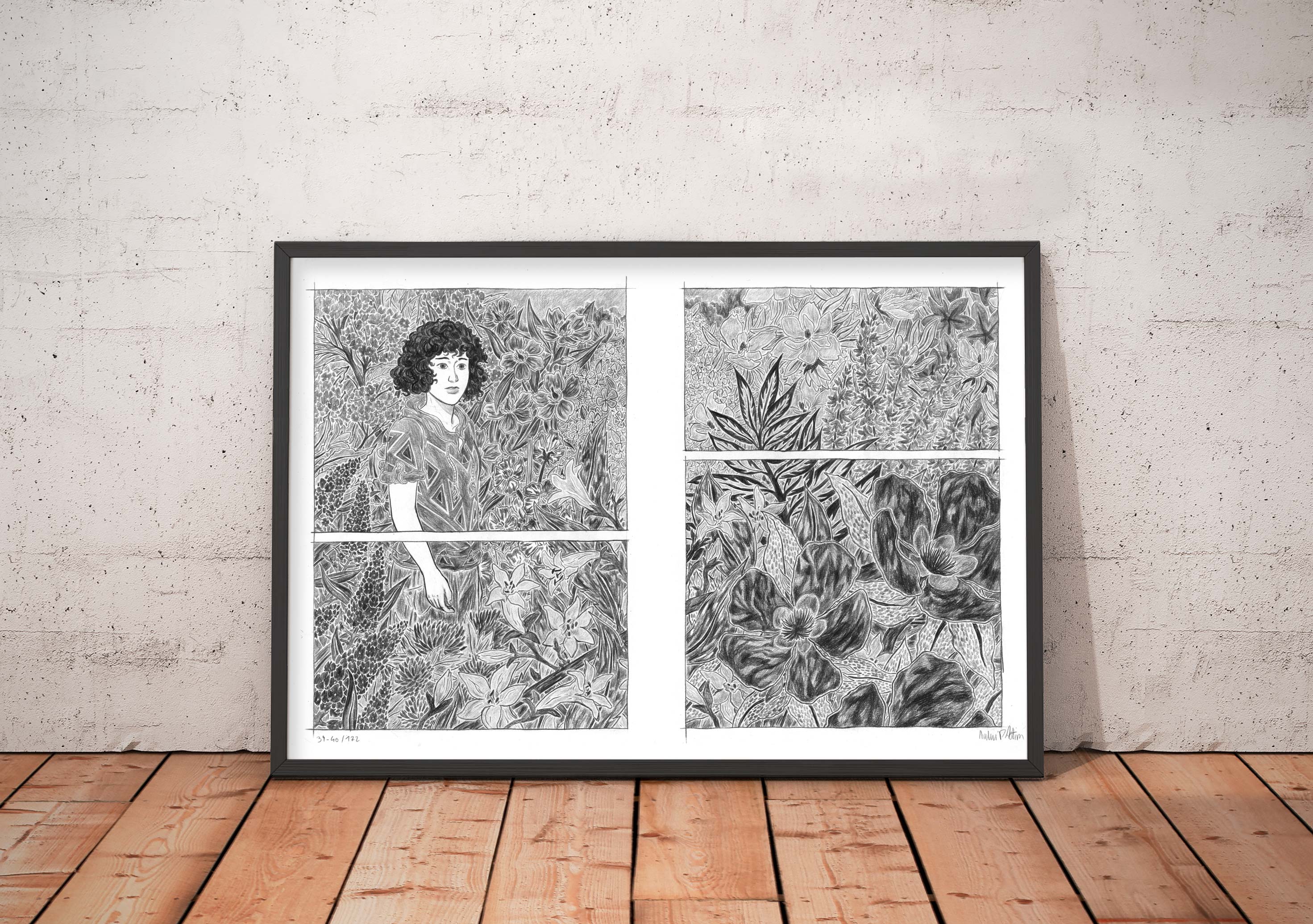 Ce dessin est la planche originale des pages n°40 et 41 de la bande dessinée "Comme une fleur" sortie en mars 2025 chez Delcourt, et scénarisée par Anne Baraou.