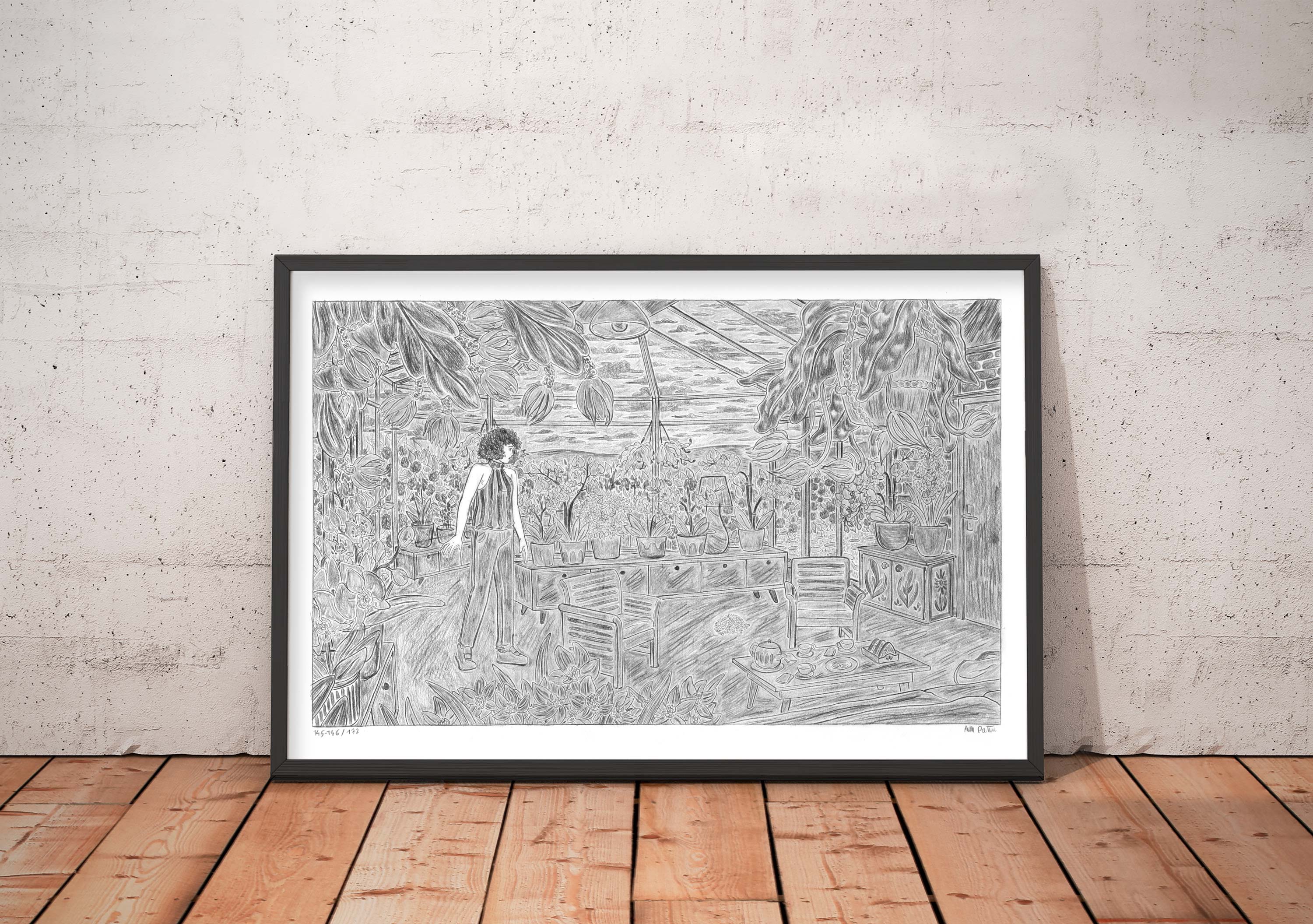 Ce dessin est la planche originale des pages n°146 et 147 de la bande dessinée "Comme une fleur" sortie en mars 2025 chez Delcourt, et scénarisée par Anne Baraou.