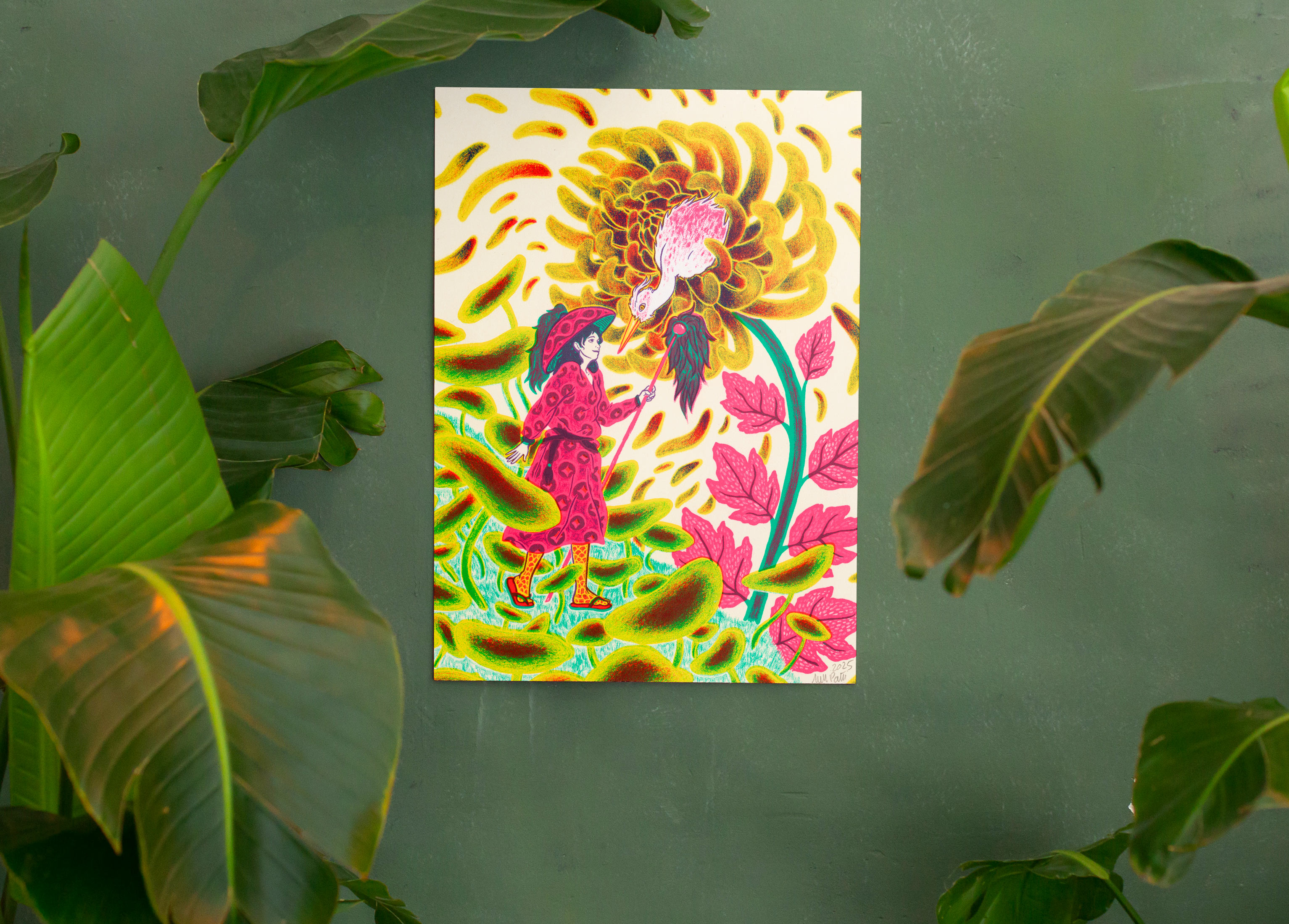 Image imaginée après la visite de l'exposition Hokusai aux Chateau des Ducs de Bretagne, à Nantes, en 2025.