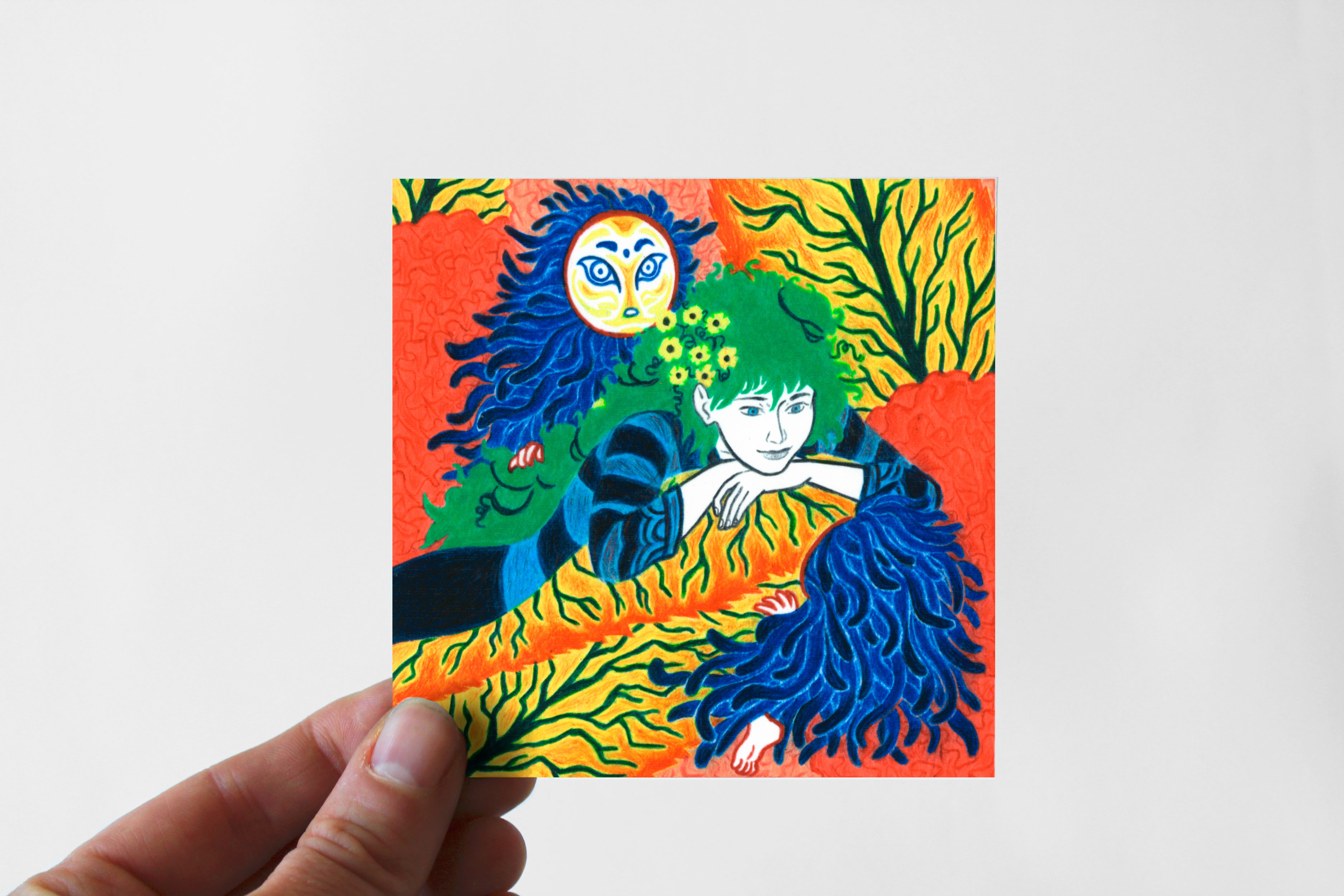 Reproduction d'un tout petit dessin aux crayons de couleur.