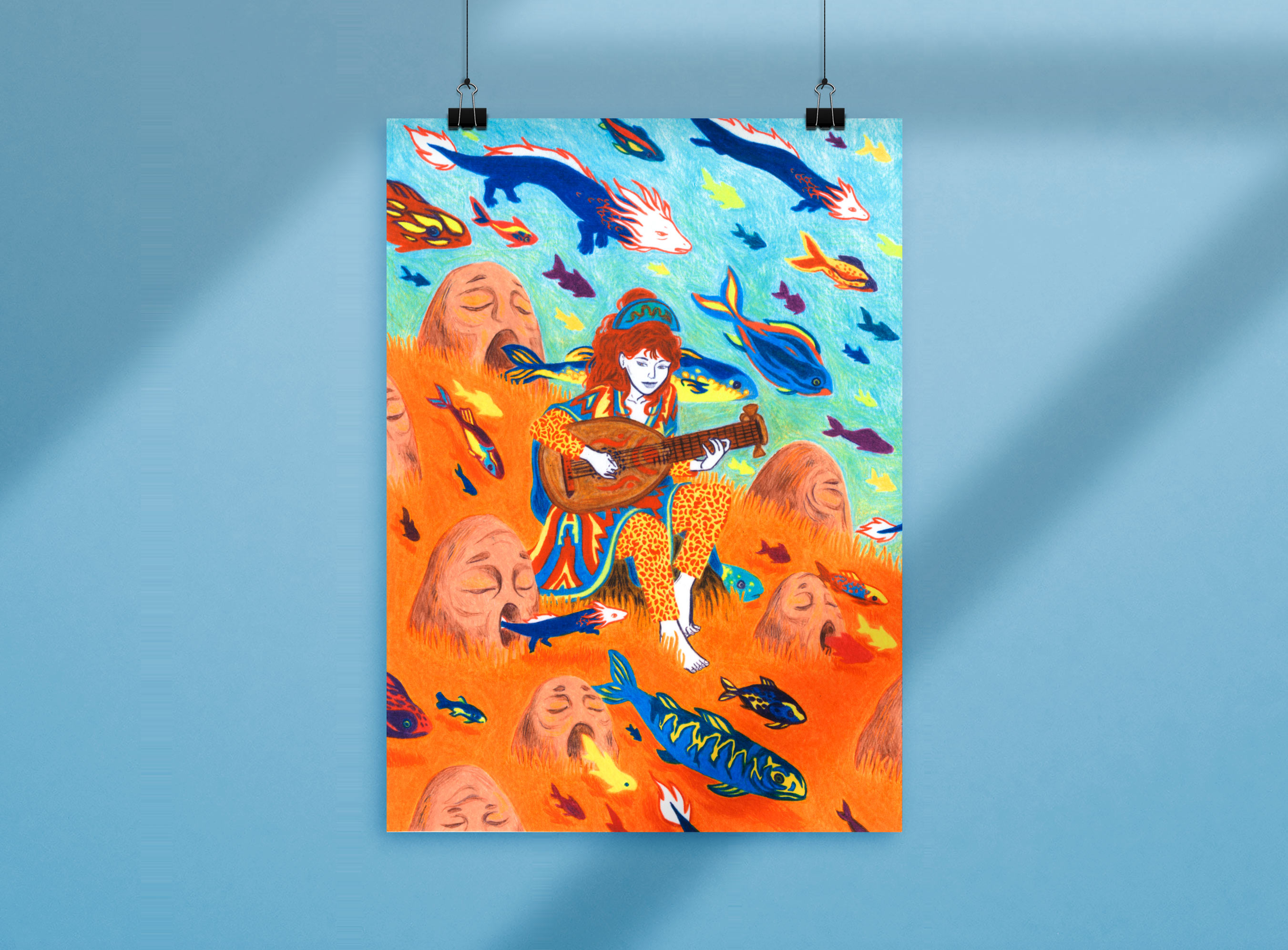 Il s'agit de la repoduction d'un dessin avec des rochers.